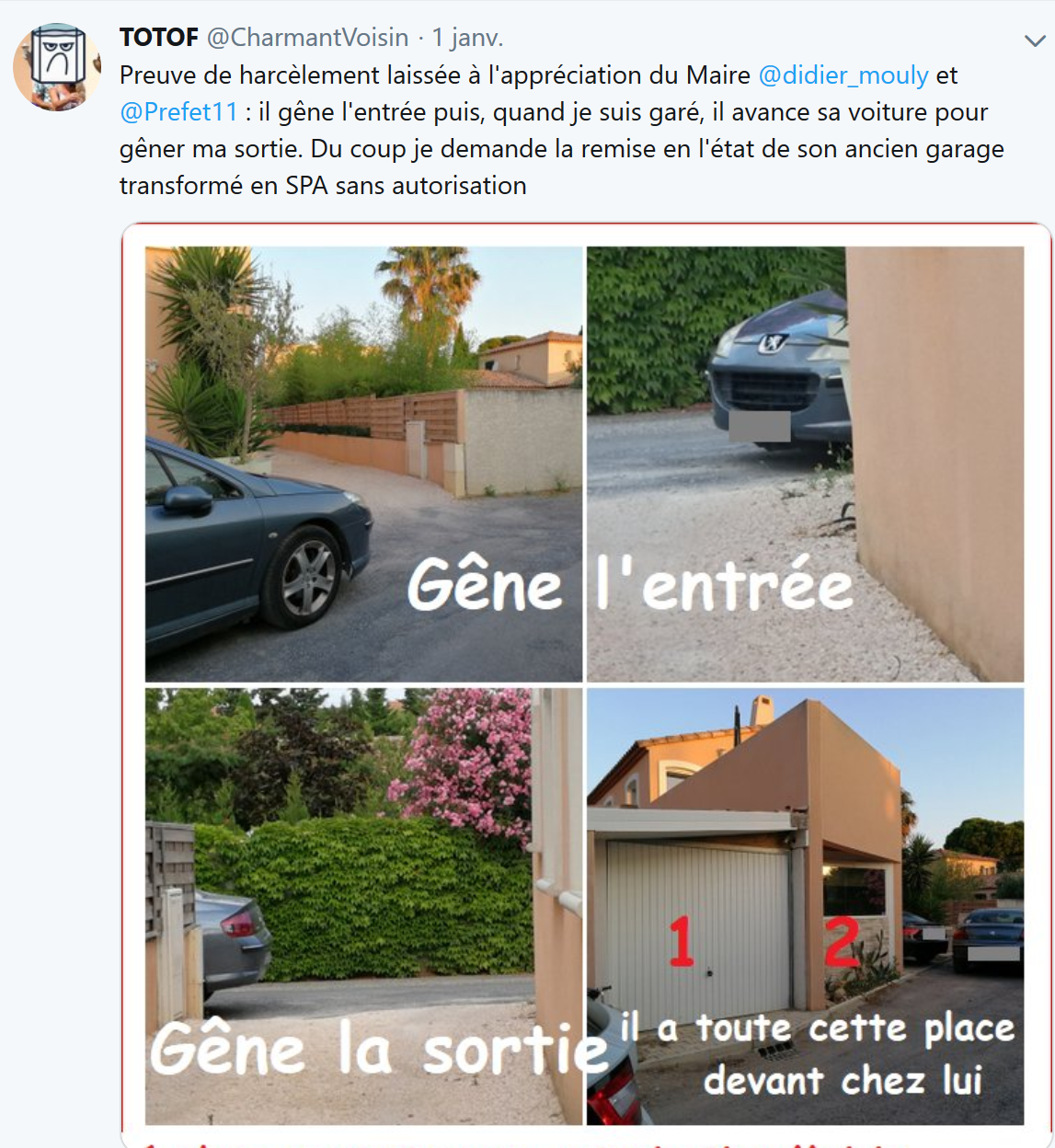 Quand sa police municipale refuse de verbaliser des stationnements manifestement gênant aux fins de faire partir le voisin, lequel s’est porté acquéreur d’une villa et veut l’empêcher de contourner les règles de l’urbanisme.