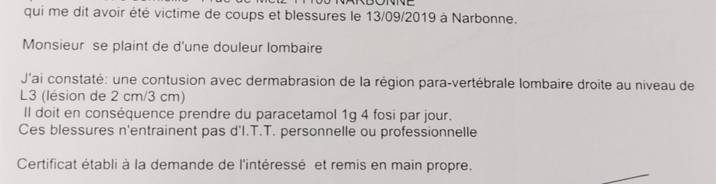 Je suis allé porter plainte au commissariat pour agression. J’ai également remis copie du dossier à mon avocat.