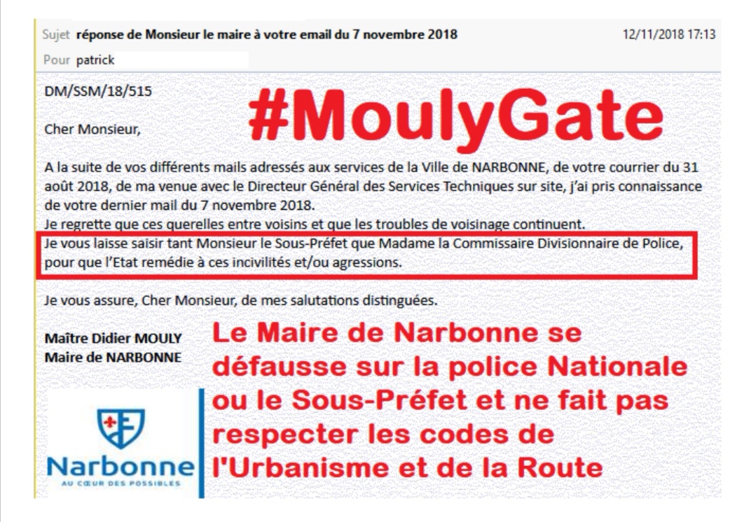 Quand le Maire de Narbonne, Didier Mouly, ne fait pas respecter le code de l’urbanisme et régularise la demande de travaux illégale d’un constructeur sans scrupule.