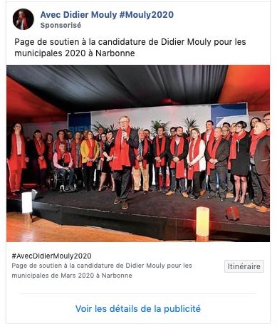 Quand un avocat ignore le code électoral et que les publicités sponsorisées sont interdites 6 mois avant le scrutin (Le non-respect de l’article L52-1 du code électoral est puni de 75 000 euros d’amende) comment peut il prétendre être réélu comme premier magistrat de Narbonne ?