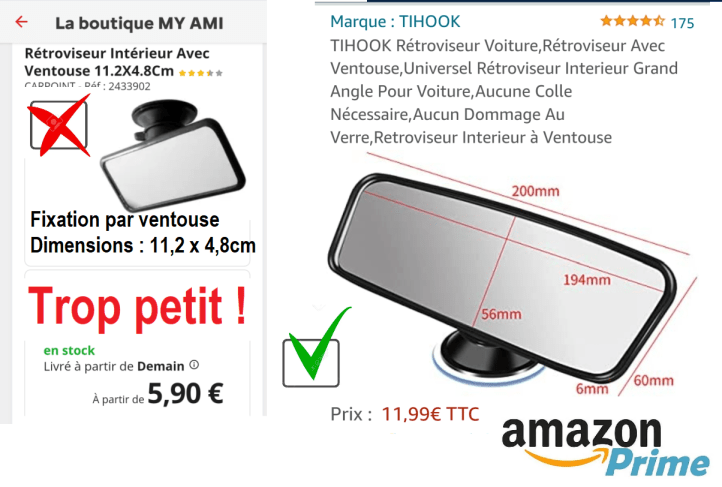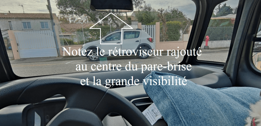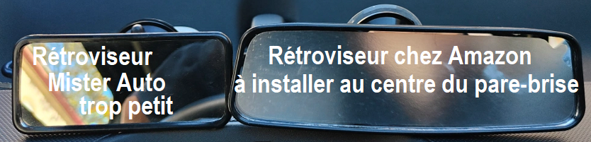 Au début nous avions conseillé de rajouter un rétroviseur au centre du pare-brise et de l’acheter chez Amazon (20 cm de large au lieu de 11,2)