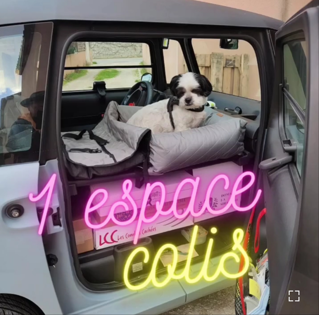 L’espace colis me permet d’aller faire mes courses et d’y poser un sac de vêtements ou une petite valise. Cela fait un véritable coffre de voiture.